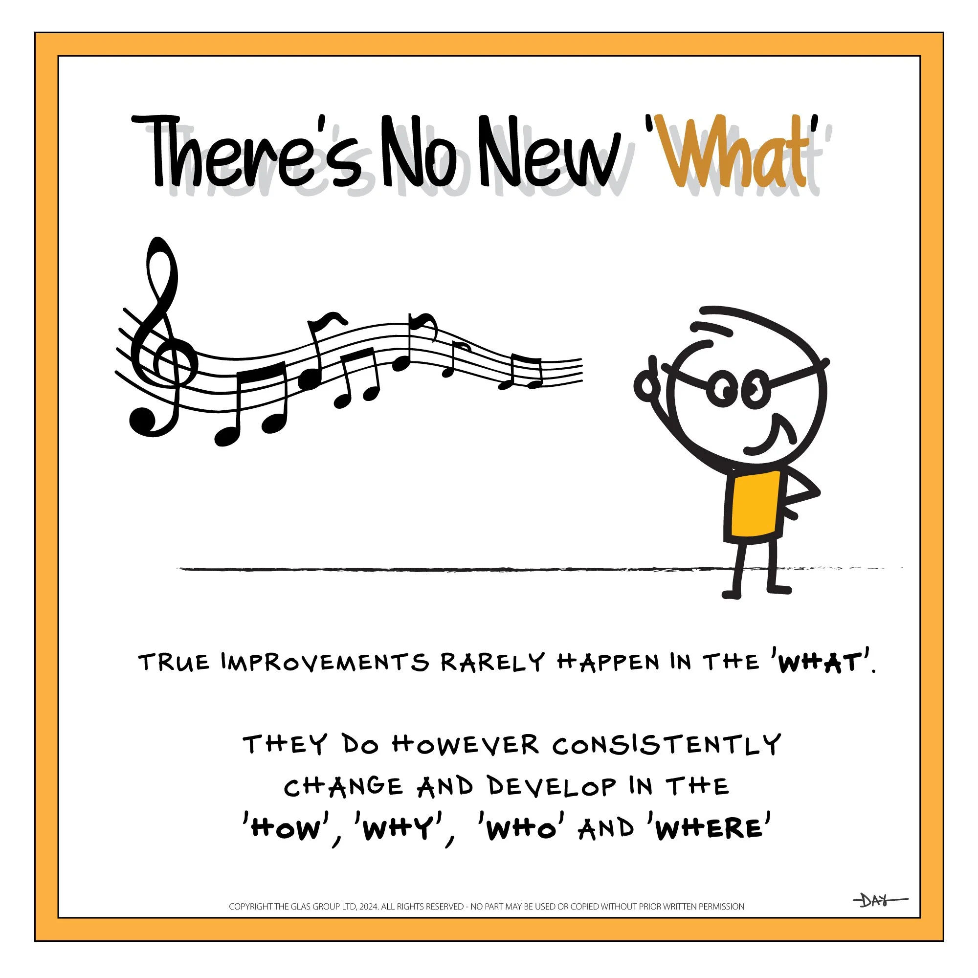 True improvements rarely happen in the ‘what’, they do however consistently change and develop in the ‘how’ and ‘why’ - and also ‘who’ and ‘where’. This is where value sits and where more time and energy should be spent. It’s also worth remembering that people will easily compete with you on the ‘what’, but it will be far harder to compete with you on the ‘how’, ‘why’, ‘who’ or ‘where’ if you keep developing and improving them.