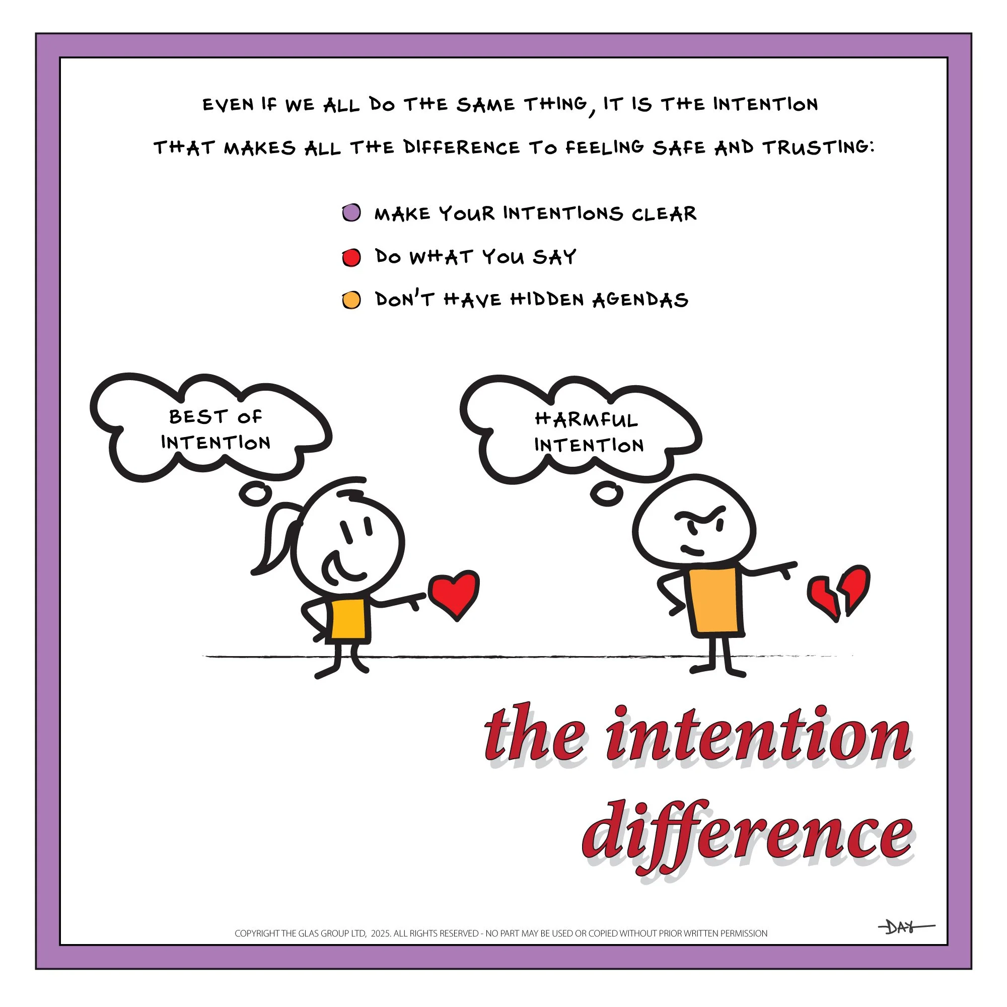 It made me think about how lots of people can all do the same thing, but we often feel differently about the action - all because of the intention difference. As leaders, this is something vitally important to understand. Making our intentions clear and sticking to them is key to trust and creating safe environments.